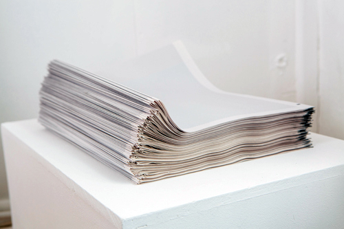 In May 2015, Tanks & Tablecloths: Chapter Two explored the extensive archives of Devonport Naval Heritage Centre (DNHC), relocating original artefacts and presenting these alongside new works in the gallery of Plymouth Arts Centre.The exhibition was a test-ground for our experimental concept of ‘an exploded book’: an attempt to define how a work might be ‘read’ in space, using four-dimensional interrelationships between text, subject and object. DNHC holds a fascinating military collection which records the development of the dockyard and Plymouth’s role in the Royal Navy. It houses a large collection of ‘victualling’ artefacts from the Royal William Yard in Stonehouse. This vast facility, designed by Sir John Rennie and completed in 1831, became the major provisioning, or ‘victualling’, depot of the Royal Navy. Buildings in the Yard included a Cooperage, Slaughterhouse and Brewhouse (although the latter was never used for this purpose). Supplies for the Royal Navy were stored at the Yard, including equipment, food rations and clothing. From our first visits to DNHC, we were struck by the quantity of items that established consistency, systematization and uniformity: from mess utensils regulating portion sizes, to photographs documenting damage to ships from enemy fire. In response, the curation of artefacts and new works is framed by these notions of measuring, quantifying, delineating and assessing, symbolised in the exhibition by the ancient Greek myth of the Fates, or Moirai. These three female deities were charged with spinning, measuring and cutting the thread of life. The exhibition was organised within these jurisdictions: Clotho, the Spinner; Lachesis, the Allotter and Atropos, the Unturning. Through a process of reduction – both literal and semantic – we interrogated the materials, processes and words used in the responsive works, paring down to their essential properties or etymology. Belli Dura Despicio [Broadside] considers the multiple meaning of the word ‘broadside’, as a description of a position, an action, a measurement and a print-term. In its complete edition of 150, Belli Dura Despicio [Broadside] depicts the 29.7km broadside range of HMS Warspite. While making the film Quercus Regius: 00:58-01:29 in the darkroom, the artists assumed the roles of the Fates, blindly unravelling, measuring and cutting thread on to light-sensitive film, the animated duration of which corresponds to that of the sinking of HMS Royal Oak (both warships were built in Devonport). The Measure of a Man series of works took the concept of the ‘average man’ to develop a series of unconventional metrics for describing the human body. The wool from a standard ex-Government naval jumper was re-spun into rope (referencing Devonport’s historic ropery); the amount of salt present in the average male was extracted using a process of rapid evaporation from seawater gathered in Plymouth Sound. The process of making the works and the time invested in their creation was as important as the finished pieces themselves, and the passage of time made visible in some of the works designed to tarnish and corrode during the period of the exhibition. Each section of the exhibition was demarcated by a specially created 'treadplate', depicting the name of the deities, referencing the ship's treadplates in the DNHC collection. This exhibition was a rare opportunity to see the archive items outside of the DNHC, where pre-booking is required. For further details on DNHC open days and booking details, visit www.devonportnhc.wordpress.com Credits and thanks For their generous support in terms of time, equipment, knowledge and expertise: Nicola Dowding and Ray Crockett at Devonport Naval Heritage Centre for their generosity in allowing us full access to the DNHC archive; all the volunteers at Devonport Naval Heritage Centre but particularly Keith Johnson, Paul Santillo, Bob Cook and David Boden for their time and helpful insights into archive items; Drummond Masterton for CNC milling of Clotho, Lachesis and Atropos; Paul Ridout for all his work editing and sequencing Quercus Regius: 00:58-01:29; Jean Fenton at Kaeravel Krafts for her expertise in all things wool and for spinning our thread ready for rope-making; Tessa Wannell and staff at Morwhellham Quay for helping us make the rope; Oliver Udy at Plymouth University for his help in the darkroom; Vickie Fear, Caroline Mawdsley, Steve Mitchell and Ben Borthwick at Plymouth Arts Centre for their help in producing this show; Tim Mills at Plymouth History Festival for first putting us in contact with DNHC; Cornwall Ladies Auxilliary (West) for knot-tying; South West Film & Television Archive for loan of film equipment; Peninsula Arts for loan of plinths and Estates at Plymouth University for plinth porterage; Owen Ryles for his introduction to Plymouth Athenaeum; James Jobling-Purser and Gus Williams at Holman’s Test Mine, University of Exeter for explosives advice. Finally we would both like to thank our ever-patient and supportive families. All artefacts on loan from Devonport Naval Heritage Centre. Archive images courtesy of Devonport Naval Heritage Centre. Photos by Andy Ford |