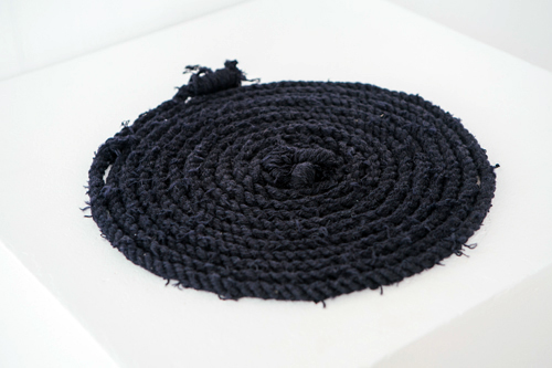 ![]() ![]() Combed Tops Date unknown Samples of wool ‘tops’ used for spinning yarn 783 x 385 x 55 mm ![]() The Measure of a Man I [4 Fathoms] Wool from one disassembled navy surplus pullover, spun into rope 7320 x 20 mm ![]() ![]() Italian Torpedo I, II 1943 Digital reproductions of original archive print and glass negative 229 x 173 mm Fig. iv Helios Ball of wool taken from naval jumper & 35mm orthographic film 9400 x 35 mm wound film & approximately 50000 x 1 mm wound wool ![]() ![]() ![]() Fig. v The Measure of a Man II [For Herbert] Electroformed copper feather, equivalent weight of coal grains on folded handkerchief 130 x 20 mm & 130 x 130 mm ![]() Fig. vi Things That Were / Things That Are / Things That Are To Be CNC Engraved Traffolyte 125/120/150 x 40 x 2.5 mm ![]() Fig. vii Lead footprint Believed to be 1940 but no accurate records 295 x 385 x 10 mm From a diver’s suit: 'The weighted sole is bolted to a wooden insole, which in turn has a leather, canvas or rubber upper. Lead was the most common sole and a pair could weigh up to 34 lb.' [Source: Wikipedia] ![]() Fig. viii Uncurling machine Date of original artefact and origin unknown Digital reproduction of original archive item Print size 274 x 302 mm “Hand uncurling machine used at Royal Clarence Yard [Gosport] for untwisting hair to make mattresses.” [Source: DNHC] ![]() Fig. ix Clotho (The Spinner) CNC milled aluminium sheet 765 x 355 x 10 mm |