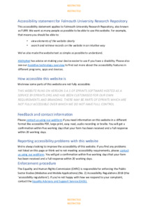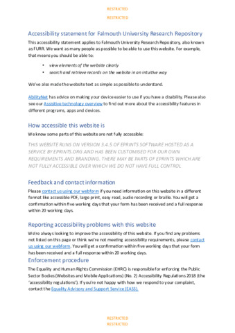 Pellow, Stephen (2022) Falmouth University Research Repository Accessibility Statement. UNSPECIFIED.