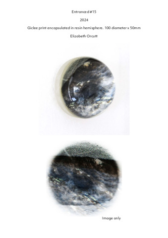 | Abstract / Summary: | Entranced #15 continues my practice-research into vision as a relational process. Rather than being secured through resemblance, the “visual self” comes into being through looking; through the ongoing exchange between my look and what I am looking at. In this work, that exchange is staged through contemplation of sand shaped by a rivulet, and, crucially, through the surrounding space in which this looking takes place: the gap, or what I have termed the feminist fitting-room (Orcutt, 2022), where vision is negotiated and meaning emerges. Formally, the work makes this explicit. Two images are digitally sandwiched, my iris/pupil and the granular surface of the sand through and around the water, so that meaning is not delivered at a glance but has to be patiently worked for. The viewer is pulled into a peering posture, a kind of attentive leaning-in that echoes the method that produced the image: close observation as a way of knowing. The resin hemisphere is not simply a display device. It behaves like an object that returns the look: glossy, ocular, insistently present. It asks the viewer to dwell with its surface; an intimate, reciprocal looking that activates the work in relationship among the image, the viewer’s body, and the space that holds them. In this sense, Entranced #13 sits squarely within my diffractive feminist methodology: practice as a means to think-with vision, and to test how a visual self is made, across layers, through encounter, in the space between. ORCUTT, Elizabeth. 2022. Reflection and Photography: Materialising My[Visual]Self. University of the Arts London: Falmouth University. |
