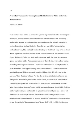 Text (Fosco’s Fat: Transgressive Consumption and Bodily Control in Wilkie Collins’ The Woman in White)