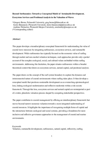 Beyond Surfonomics: Towards a Conceptual Model of Sustainable Development, Ecosystem Services and Positional Analysis in the Valuation of Waves.