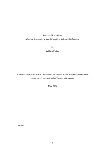 Parker, Will (2025) Red Lake / Black Mine: Affective Bodies and Material Complicity in Sound Art Practice. Doctoral thesis, Falmouth University / University of the Arts London.