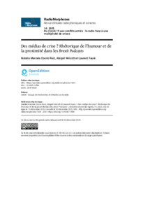 Wincott, Abigail ORCID logoORCID: https://orcid.org/0000-0002-3162-644X, Osorio Ruiz, Natalia Marcela ORCID logoORCID: https://orcid.org/0009-0009-5077-995X and Fauré, Laurent ORCID logoORCID: https://orcid.org/0000-0002-0553-1834 (2025) Des médias de crise ? Radiomorphoses, no volume (14). ISSN 2649-9630