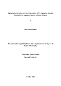 Kirigha, Faith (2024) Digital Authoritarianism. Doctoral thesis, Falmouth University / University of the Arts London. |